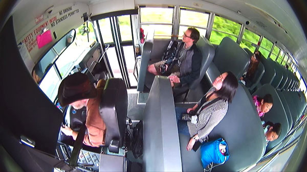 HD3U cameras gain maximum coverage with the least amount of cameras. In this application, these cameras capture a wide view of the driver and stepwell as students get on and off the bus, including a full view of the driver's hands to ensure they are both on the steering wheel during vehicle operation.