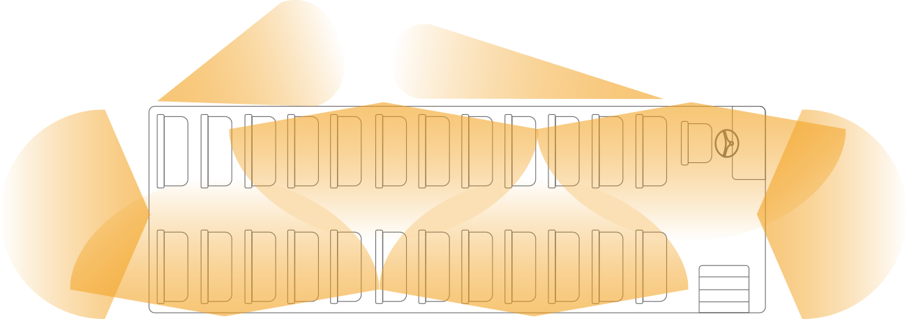 HD3U cameras are placed throughout the bus in a zig-zag, or criss-cross configuration to gain maximum coverage with the least amount of cameras. These cameras are especially useful in capturing views deep within school bus high seat backs.